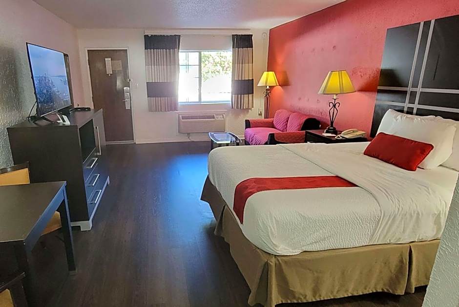 Free WiFi, free hot breakfast, mini-refrigerator, microwave, in-room temperature control, coffee/tea maker, hair dryer, HDTV, cable TV, bathroom amenities, alarm clock, desk, iron
